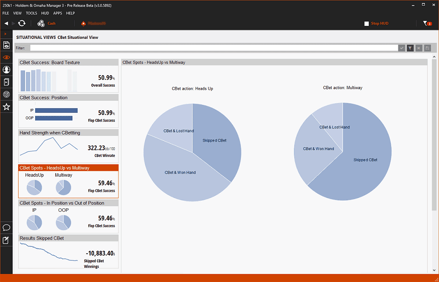 Holdem Manager 3 представляет игрокам внушительный арсенал инструментов для глубокого анализа собственной игры и выявления потенциальных областей для улучшения. Программа превосходно справляется с задачами детального разбора проведенных сессий, помогая выявлять систематические ошибки и корректировать тем самым вашу стратегию игры.