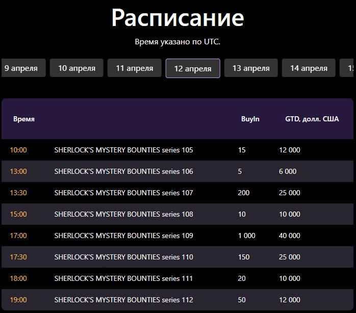Турниры будут проходить в самое разное время, поэтому принять участие в фестивале смогут игроки из различных стран. Присоединяйтесь и вы! Мистери-баунти могут достигать до $4,500!